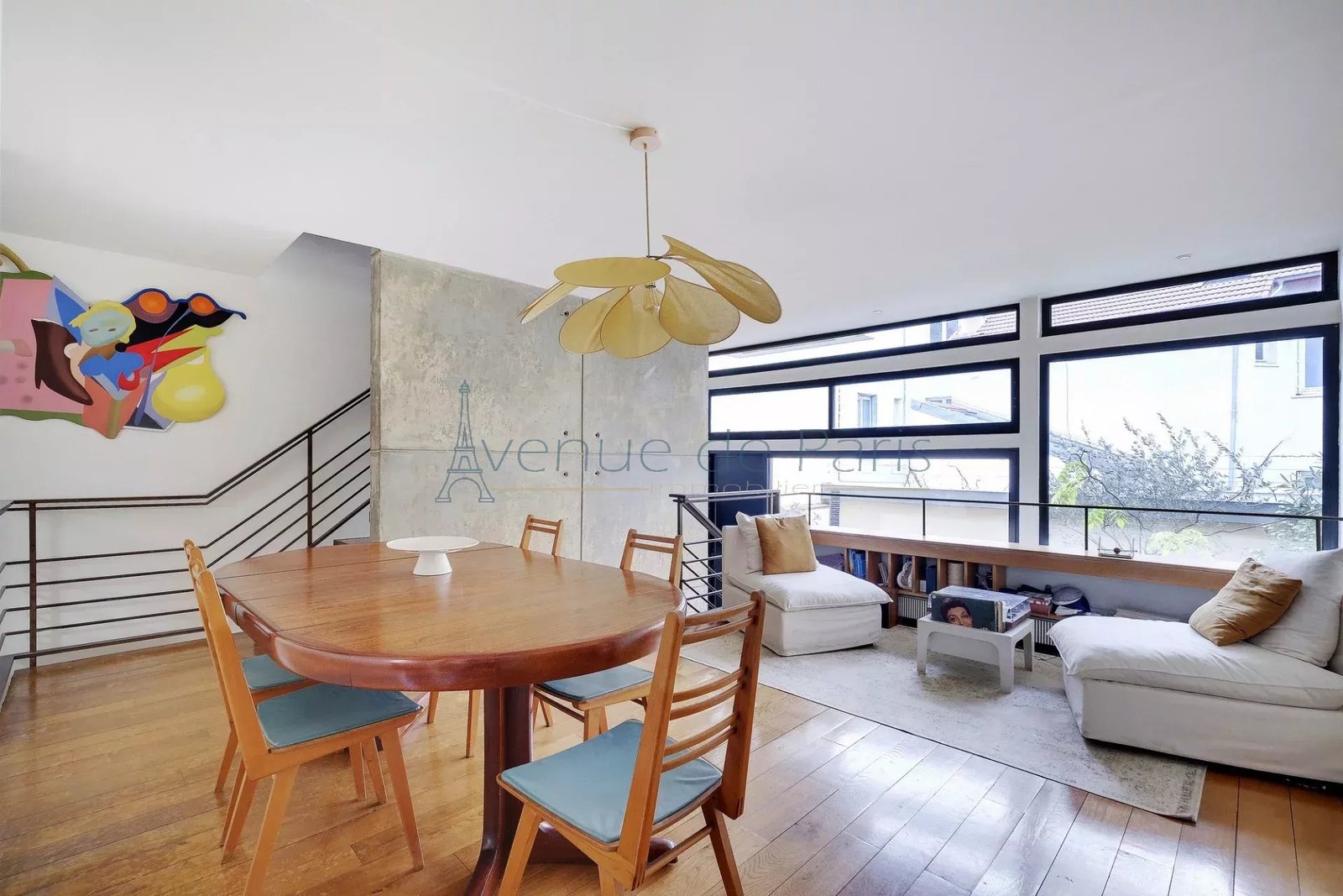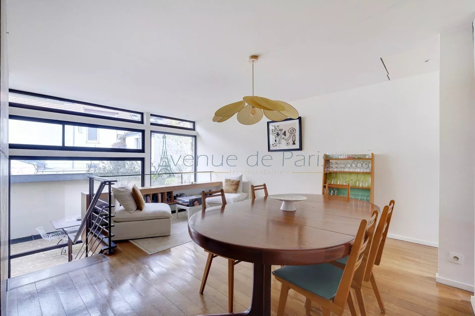 The second floor opens onto a convivial kitchen, followed by a dining room and a reading room. On this level, a vast terrace offers a truly Parisian outdoor setting for enjoying the warm weather,